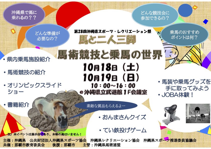 今年の沖縄県スポーツ・レクリエーション祭に県馬連も参加します。